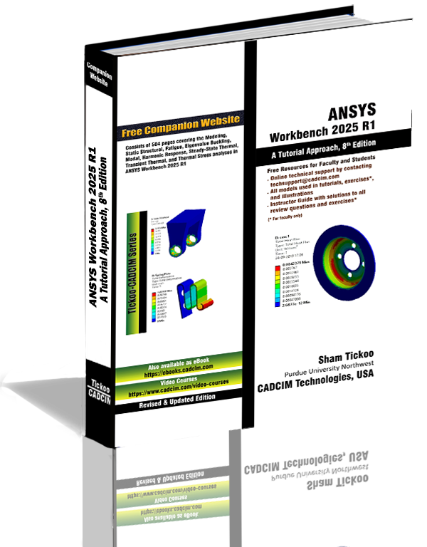 ANSYS Workbench 2025 R1: A Tutorial Approach textbook introduces the readers to ANSYS Workbench 2025, one of the world’s leading, widely distributed, and popular commercial CAE packages. It is used across the globe in various industries such as aerospace, automotive, manufacturing, nuclear, electronics, biomedical, and so on. ANSYS provides simulation solutions that enable designers to simulate design performance. This textbook covers various simulation streams of ANSYS such as Static Structural, Modal, Steady-State, and Transient Thermal analyses. Structured in pedagogical sequence for effective and easy learning, the content in this textbook will help FEA analysts in quickly understanding the capability and usage of tools of ANSYS Workbench.