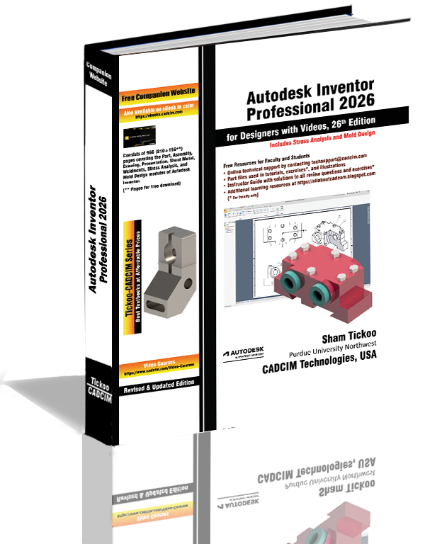 Autodesk Inventor Professional 2026 for Designers with Videos is a comprehensive book that introduces the users to Autodesk Inventor 2026, a feature-based 3D parametric solid modeling software. All environments of this solid modeling software are covered in this textbook with a thorough explanation of commands, options, and their applications to create real-world products. The mechanical engineering industry examples that are used as tutorials and the related additional exercises at the end of each chapter help the users to understand the design techniques used in the industry to design a product. Additionally, the author emphasizes on the solid modeling techniques that will improve the productivity and efficiency of the users. After reading this book, the users will be able to create solid parts, sheet metal parts, assemblies, weldments, drawing views with bill of materials, presentation views to animate the assemblies and apply direct modeling techniques to facilitate rapid design p