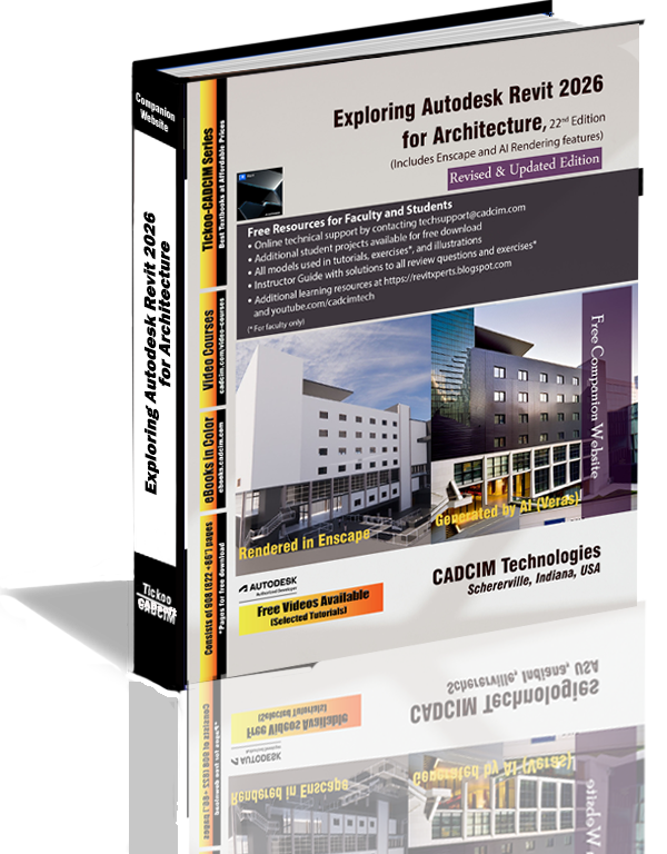 Exploring Autodesk Revit 2026 for Architecture is a comprehensive book written to cater to the needs of the students and the professionals who are involved inBuilding Information Modeling (BIM) Profession.Revit 2026 book is a gateway to power, skill, and competence in the field of architecture and interior presentations, drawings, and documentations. In this Revit book, the author has emphasized on the concept of designing, creating families, massing, documentation, rendering orthographic/perspective views of building and usage of other advanced tools. In addition, Revit 2026 for Architecture book covers the description of various stages involved in rendering the model in Enscape plug-in.